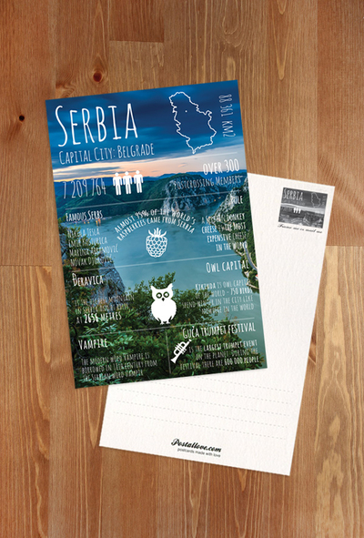 Wyślij pozdrowienia z Serbii dzięki pięknie ilustrowanej pocztówce „Greetings from... Serbia” autorstwa Ewy Słocińskiej. Żywe kolory i urocze detale oddają klimat i kulturę Serbii, czyniąc tę kartkę wyjątkowym dodatkiem do każdej kolekcji. Idealna do Postcrossingu, korespondencji lub po prostu, by sprawić komuś radość. Wysokiej jakości papier i wyjątkowy design sprawiają, że ta pocztówka wniesie odrobinę serbskiego uroku do każdej skrzynki pocztowej.